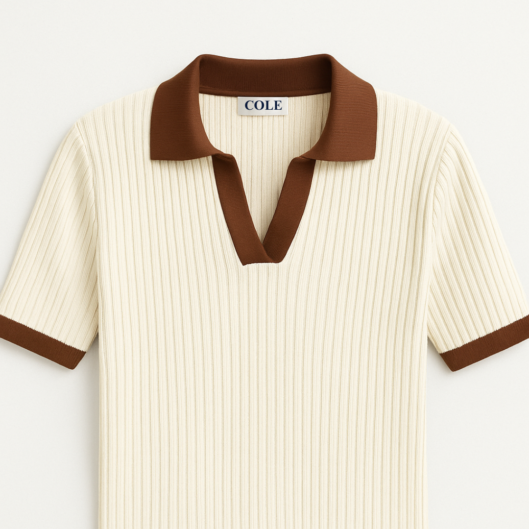Women's Colour Block Knitted Polo Shirt with Notched Collar